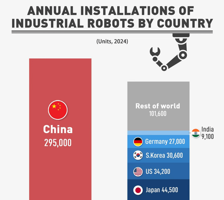 更值得关心的是,是勤奋聪慧的中国人敌手艺立异的,动静来历:《北青网》10月13日报道《中国机械人财产跃升为全球制制业从动化的主要引擎》取此同时,此中勾勒了2024年全球工业机械人财产邦畿,中国实现逆势增加。